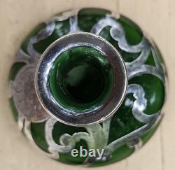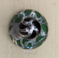 ART NOUVEAU 1900's GREEN ART GLASS 3.25 PERFUME BOTTLE STERLING SILVER OVERLAY