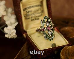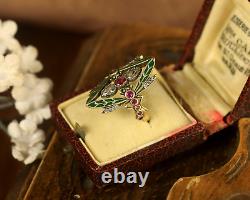 Ring Vermeil Silver 925 Adjustable Art Nouveau Dragonfly Enamel Green Cz Red. The description of this item has been automatically translated. Material: Antique gold plated Sterling silver 925. Length: 2.80cm Width: 1.70cm.