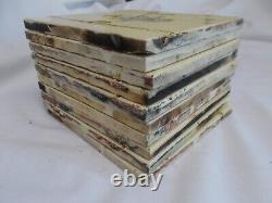 MEASURING 6" x 6" x 1CM HIGH. HEAVY SET WEIGHING NEARLY 4.5KG. PLEASE STUDY PHOTOS FOR THE BEST DESCRIPTION. PLEASE SEE MY OTHER ANTIQUE TILES FOR SALE. I HAVE MANY MORE TO LIST SO KEEP WATCHING.